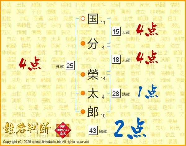 国分榮太郎さんの運勢 姓名判断 名前の画数から無料で